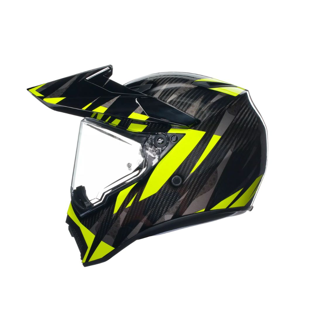 Thanks to the easy removal of the newly designed sun visor and extra wide visor, four different wearing options are possible. The lightweight helmet shell, made from a combination of carbon, aramid and glass fibers, meets the highest AGV safety standards. The moisture-absorbing and water-repellent, high-quality interior of the helmet promises unlimited riding pleasure with maximum wearing comfort.