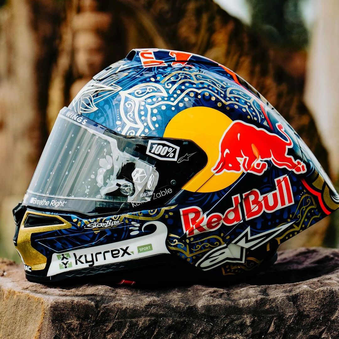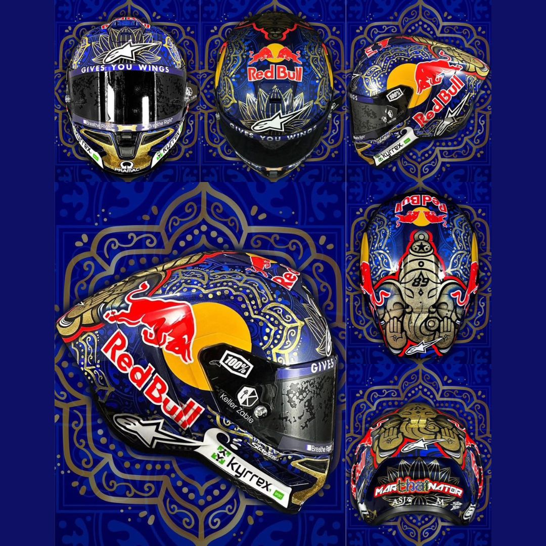 Limited Edition R10 Helmet Jorge Martin thai gp helmet. The result of over 10 years of intensive study, development, and testing, the goal of the Supertech family of helmets is to create the most advanced, protective, and performance-enhancing helmets possible for racers and riders worldwide. Following years of extensive research, development, and testing of the Supertech R10 road racing helmet by Alpinestars’ Helmet Product Development Department, together with MotoGP legend Andrea Dovizioso, and MotoGP riders’ Jorge Martin, and Jack Miller. With the S-R10, the focus of the design was to ensure the highest level of performance, especially when it comes to protection and a new level of safety.The S-R10 Helmet has been engineered to provide the perfect blend of excellent ventilation, unsurpassed comfort, and the lightest weight possible without compromising on any other front. Another crucial element unique to the S-R10’s design and development is the helmet’s advanced aerodynamics, with countless sessions in the wind tunnel aimed at reducing drag and providing optimal aerodynamic stability.