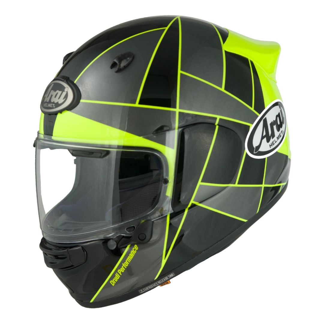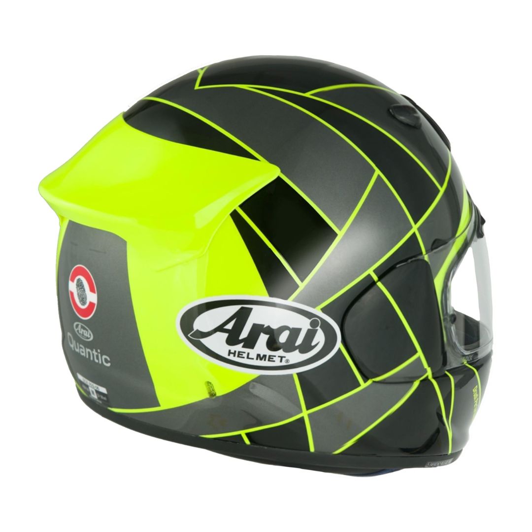 Ride faster, safer, and longer with the Arai Quantic – the helmet that blends race-proven protection with touring comfort. Engineered for sport-oriented riders, it delivers track-inspired performance, aerodynamic stability, and all-day wearability. Every detail, from the advanced e-cLc shell to the VAS visor and Arai’s signature Glancing-Off design, is built to keep you confident and comfortable on every ride.