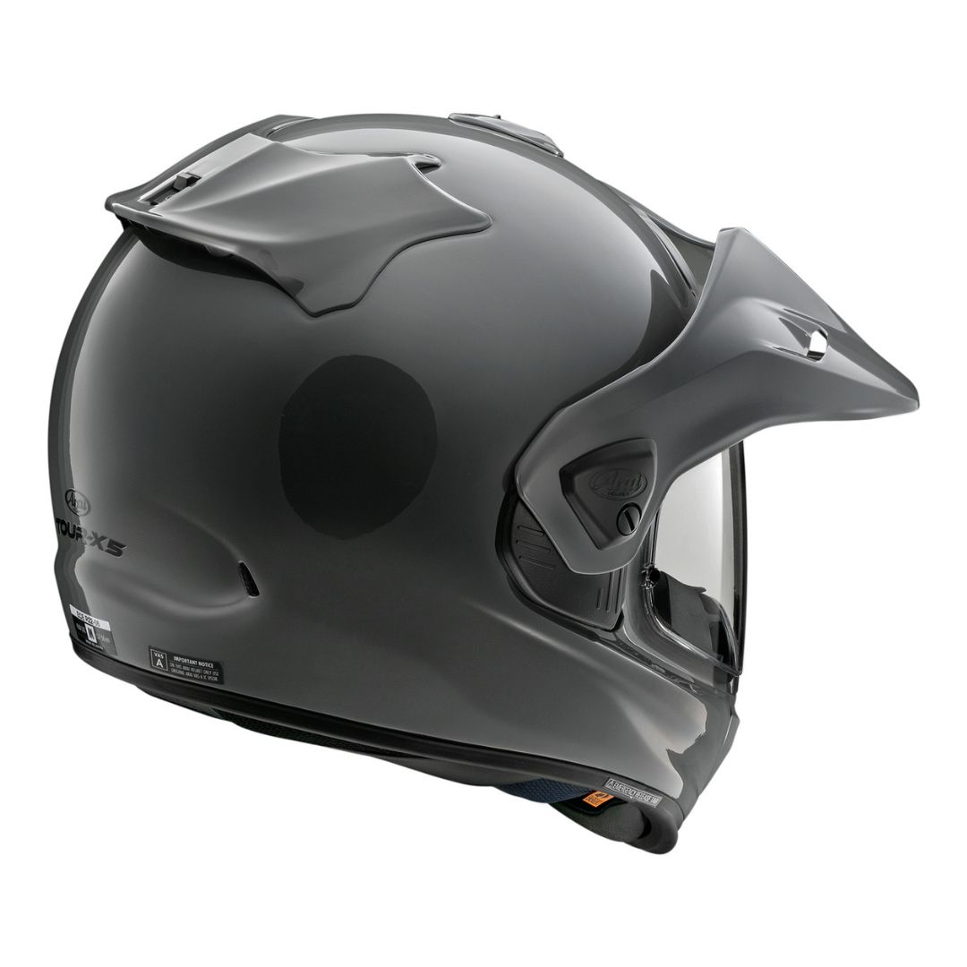 The Arai Tour-X5 is one of the most versatile premium helmets on the market, purpose-built for combined on- and off-road use. As the successor to the Tour-X4, it features a further refined, rounder and smoother outer shell, combined with modern safety technology and excellent long-distance comfort. The composite fibre shell, together with a multi-density EPS liner, delivers effective impact absorption while maintaining a balanced weight. The concept is completed by improved ventilation, a versatile peak and visor system, and a comfortable, hygienic interior.