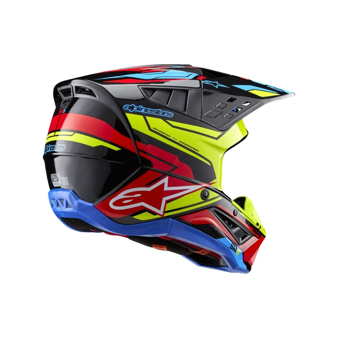 The SM5 helmet has been designed to provide MX riders with a helmet that is safe and purposefully designed to deliver optimal protection and comfort. The lightweight SM5 helmet features a thermo-injected shell incorporating a special polymer blend enhanced by varying degrees of thickness that is engineered to deliver the optimal combination of impact protection and light weight, while the five density EPS liner ensures the correct density in the correct area for enhanced impact absorption.