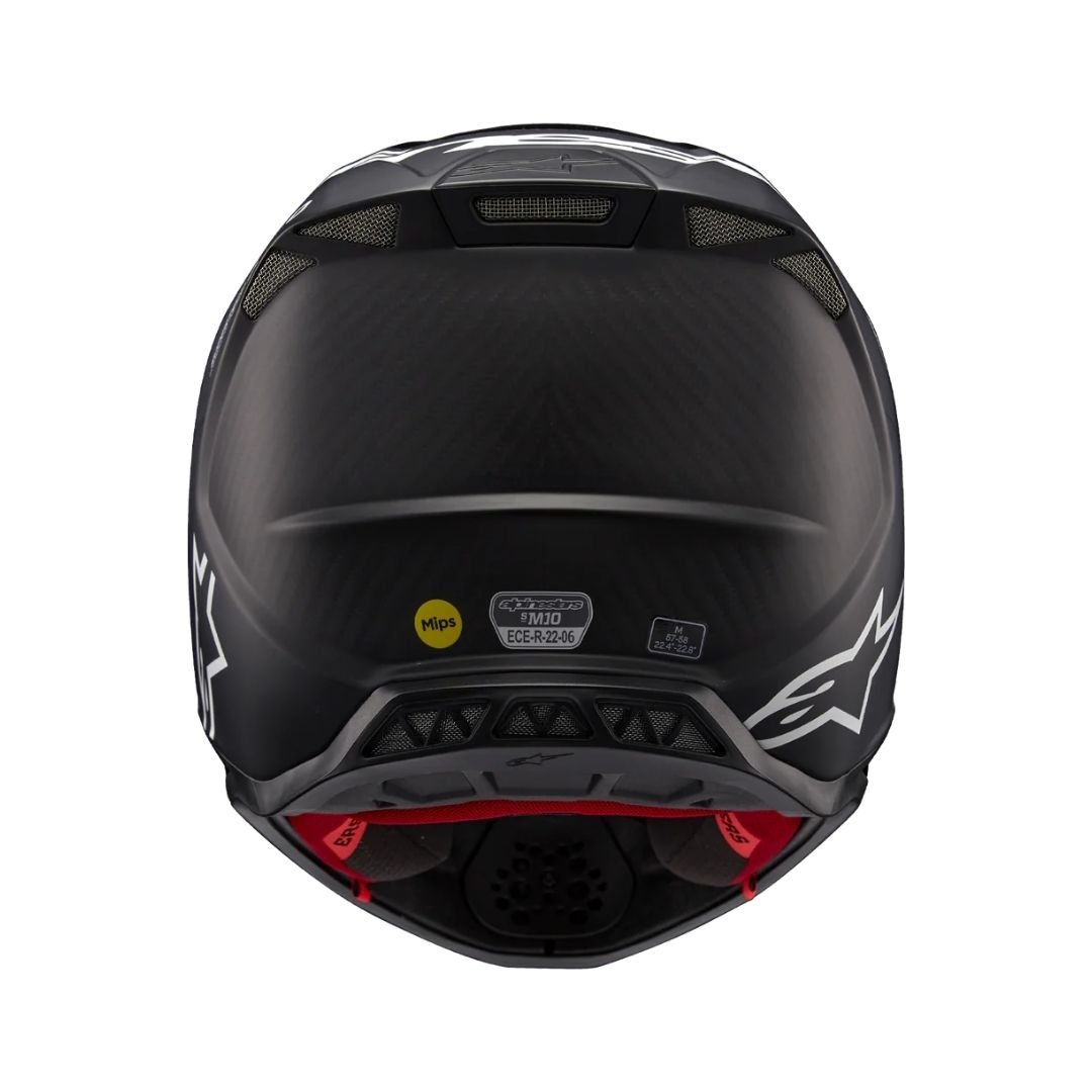 The goal of the Alpinestars Supertech family of helmets was to create the most advanced, protective, and performance-enhancing helmets possible for riders worldwide. With the S-M10, Alpinestars’ Helmet Development team engineered the helmet to offer the perfect blend of excellent ventilation, and unsurpassed comfort, to create a helmet with the lightest weight possible, all without compromising on any other front. The S-M10’s design offers a smooth, attractive, aerodynamic profile which is streamlined and free of any external channels and features that might act as a load point in an impact or compromise the overall integrity of the helmet’s construction. The surface curvature promotes reduced friction on impact, allowing deflection and the most efficient transfer of energy to protect the rider’s head from direct force to the skull and referred to the neck and spinal column.