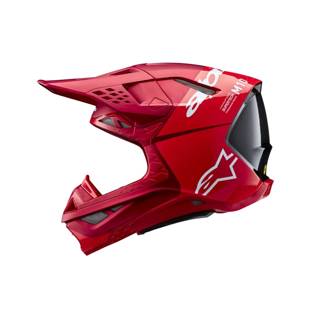 The goal of the Alpinestars Supertech family of helmets was to create the most advanced, protective, and performance-enhancing helmets possible for riders worldwide. With the S-M10, Alpinestars’ Helmet Development team engineered the helmet to offer the perfect blend of excellent ventilation, and unsurpassed comfort, to create a helmet with the lightest weight possible, all without compromising on any other front. The S-M10’s design offers a smooth, attractive, aerodynamic profile which is streamlined and free of any external channels and features that might act as a load point in an impact or compromise the overall integrity of the helmet’s construction. The surface curvature promotes reduced friction on impact, allowing deflection and the most efficient transfer of energy to protect the rider’s head from direct force to the skull and referred to the neck and spinal column.