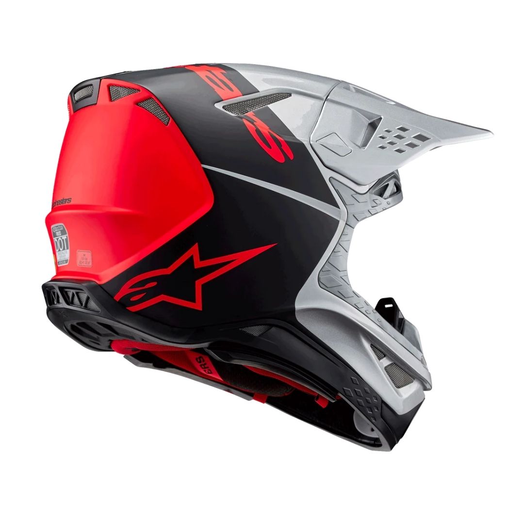 The goal of the Alpinestars Supertech family of helmets was to create the most advanced, protective, and performance-enhancing helmets possible for riders worldwide. With the S-M10, Alpinestars’ Helmet Development team engineered the helmet to offer the perfect blend of excellent ventilation, and unsurpassed comfort, to create a helmet with the lightest weight possible, all without compromising on any other front. The S-M10’s design offers a smooth, attractive, aerodynamic profile which is streamlined and free of any external channels and features that might act as a load point in an impact or compromise the overall integrity of the helmet’s construction. The surface curvature promotes reduced friction on impact, allowing deflection and the most efficient transfer of energy to protect the rider’s head from direct force to the skull and referred to the neck and spinal column.